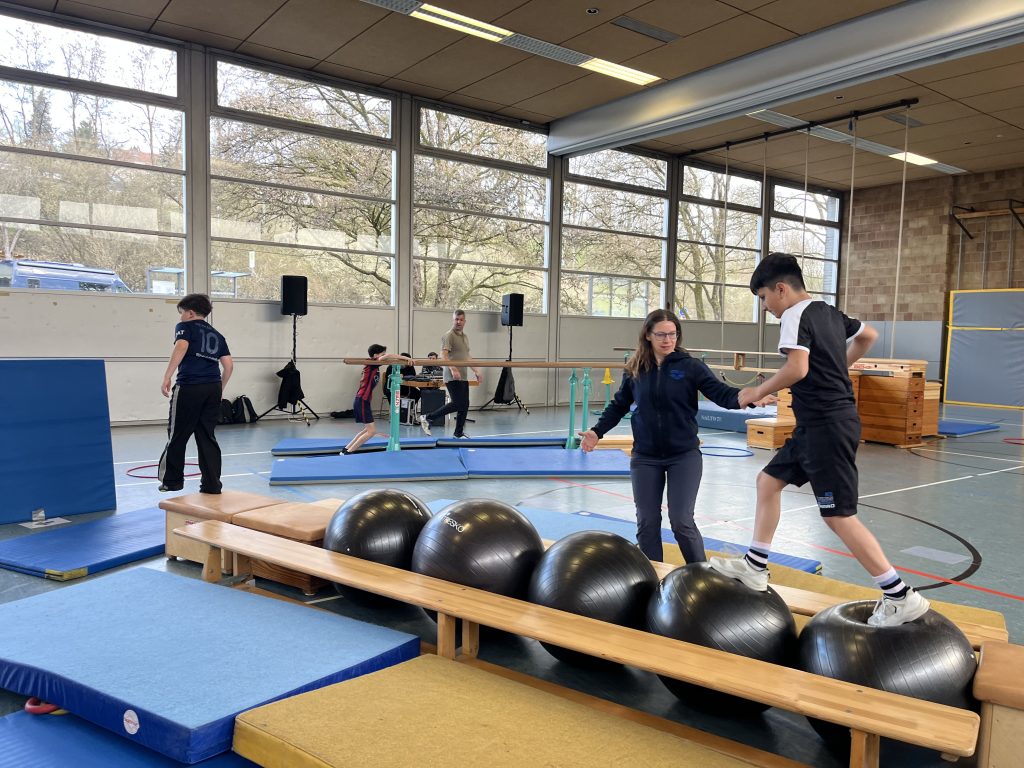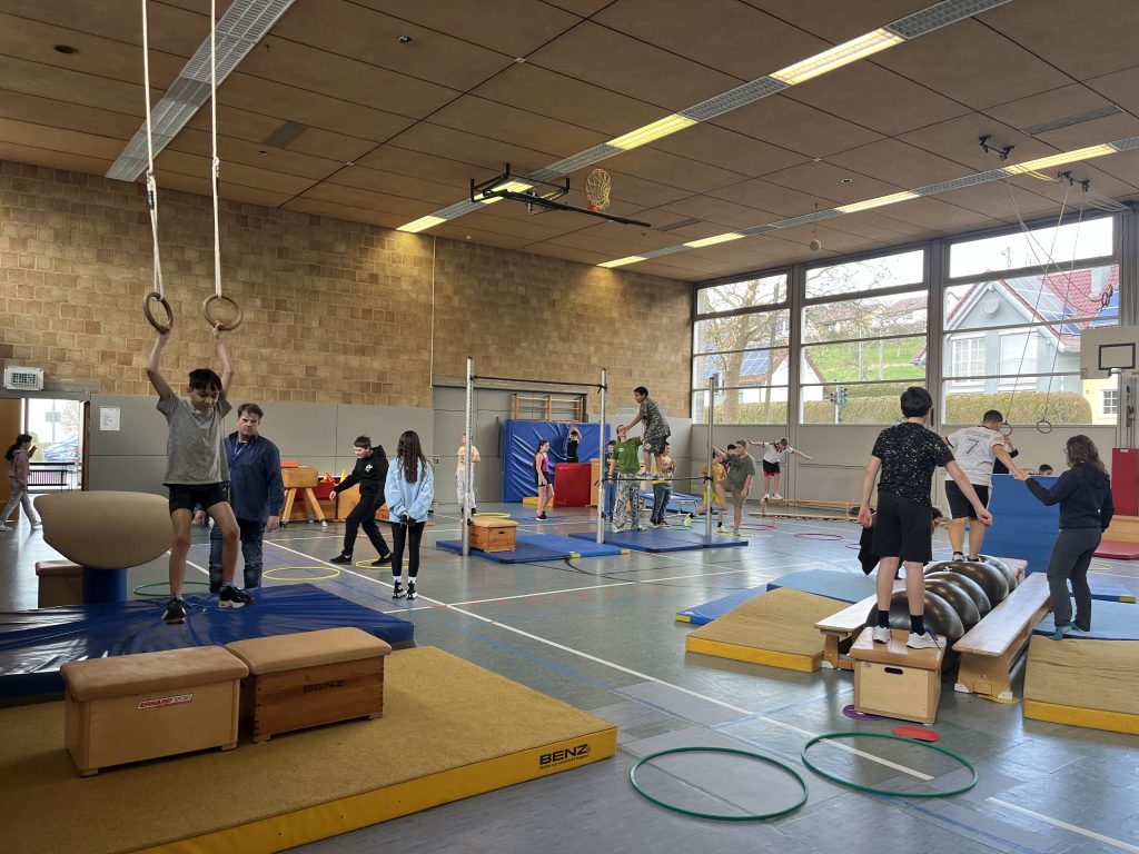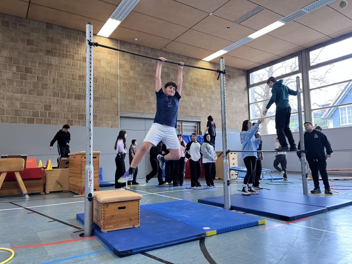Die Klassenstufen 4 bis 9 traten gegeneinander an und stellten sich den teils sehr anspruchsvollen Stationen. Ob Klettern, Springen, Hangeln oder Balancieren – Geschicklichkeit, Kraft und Ausdauer waren gefragt. Mit großem Ehrgeiz und viel Spaß meisterten die Teilnehmerinnen und Teilnehmer die verschiedenen Herausforderungen und feuerten sich gegenseitig an.